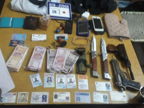 இதுதவிர பொம்மைத் துப்பாக்கிகள், 2 கத்திகள், போலி நீதிபதி ரப்பர் ஸ்டாம்புகள், வக்கீல் கவுன் ஆகியவற்றை பறிமுதல் செய்துள்ளது காவல்துறை என தகவல்கள் தெரிவிக்கின்றன.