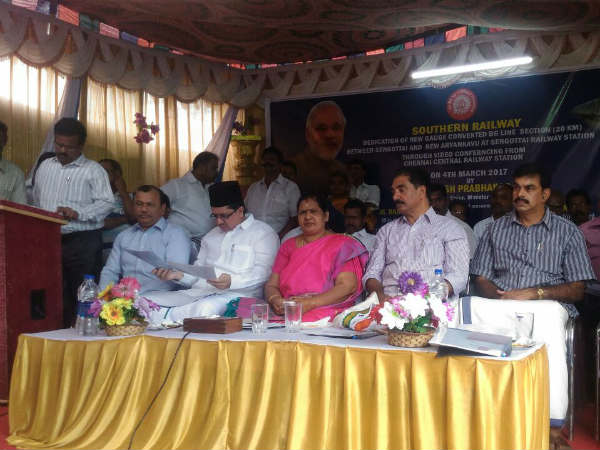 செங்கோட்டை ரயில் நிலையத்தில் நடந்த விழாவில் தென்னக ரயில்வே மதுரை கோட்ட மேலாளர் சுனில்குமார் கார்க் , தலைமை கட்டுமானபிரிவு பொறியாளர் கொல்லம் நாடாளுமன்ற உறுப்பினர் பிரேமசந்திரன், தென்காசி வசந்தி, கடையநல்லூர் சட்டமன்ற உறுப்பினர் அபூபக்கர்,செங்கோட்டை ரயில்பயணிகள் சங்கத் தலைவர் கிருஷ்ணன் உள்ளிட்டோர் கலந்து கொண்டனர்.