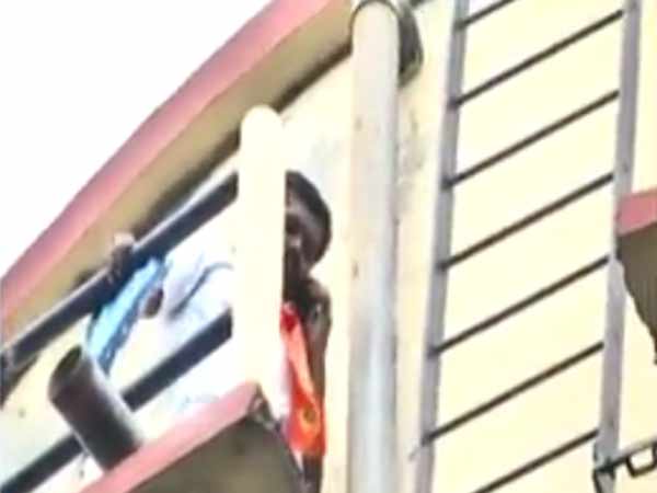அவரை மீட்க தீயணைப்பு படையினரும், போலீசாரும் முயற்சி செய்து வருகின்றனர். அவரிடம் பேச்சு வார்த்தை நடத்தி அவரை கீழே இறக்க முயற்சி செய்து வருகின்றனர்.