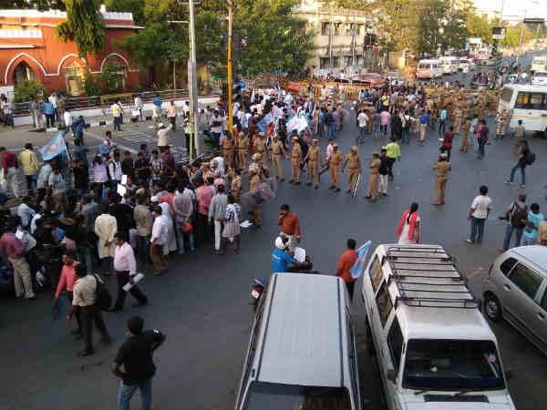 சென்னையில் ஐபிஎல் போட்டிகள் நடத்த எதிர்ப்பு தெரிவித்து அண்ணாசாலையில் திரைத்துறையினர் மற்றும் அரசியல் கட்சிகள் பல போராட்டத்தில் ஈடுபட்டன.