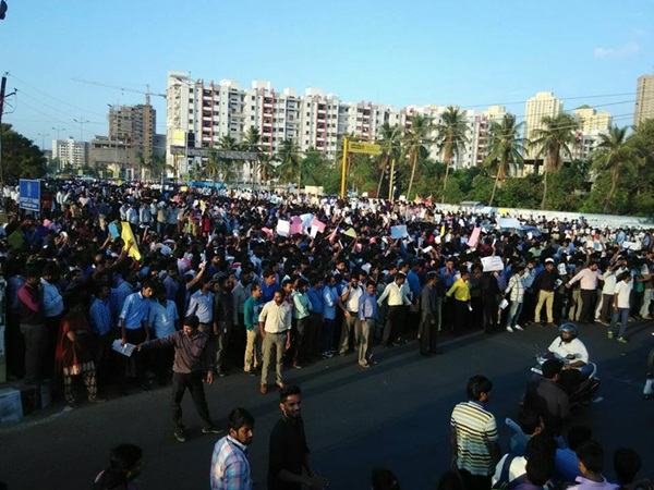 மாலை 3 மணிக்கு பின்னர் அனைத்து மென்பொருள் நிறுவன ஊழியங்களும் டி.சி.எஸ். அலுவலகத்தின் முன்பு ஒன்று கூடினர். பின்னர் அங்கிருந்து சிப்காட் வளாக நுழைவு வாயில் வரை பேரணியாக சென்றனர்.
