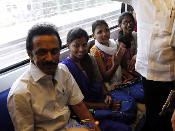 ஆலந்தூர் முதல் கோயம்பேடு வரை போக்குவரத்து நடந்து வருகிறது. இந்நிலையில் தி.மு.க. பொருளாளர் ஸ்டாலின் இன்று காலை, கோயம்பேட்டிலிருந்து ஆலந்தூர் வரை மெட்ரோ ரயிலில் பயணித்தார்.