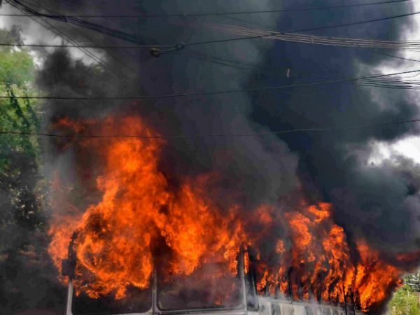 பேருந்து கொழுந்து விட்டு எரிவதை தொடர்ந்து அங்கு காவல்துறையினர் விரைந்துள்ளனர். பேருந்து தீ வைத்து எரிக்கப்பட்ட சம்பவத்தால் அங்கு பெரும் பதற்றம் ஏற்பட்டுள்ளது.