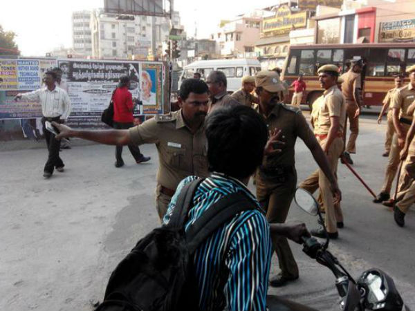 தகவல் அறிந்து அங்கு விரைந்து சென்ற போலீசார், மாணவர்களை அங்கிருந்து கலைந்து செல்லும்படி வலியுறுத்தினர். ஆனால், மாணவர்கள் தொடர்ந்து போராட்டம் நடத்தியதால் பரபரப்பும் பதட்டமும் ஏற்பட்டது. பின்னர் அவர்களை போலீசார் அப்புறப்படுத்த முயன்றபோது தள்ளுமுள்ளு ஏற்பட்டது. போலீசார் தாக்கப்பட்டதாக கூறப்படுகிறது. இதையடுத்து போலீசார் தடியடி நடத்தி மாணவர்களை விரட்டியடித்தனர். இதில் ஏராளமான மாணவர்கள் படுகாயம் அடைந்தனர் சிலருக்கு மண்டை உடைந்ததாக கூறப்படுகிறது. சுமார் 5 மணி நேரம் நீடித்த இந்த போராட்டத்தால் அப்பகுதியில் பெரும் பரபரப்பு ஏற்பட்டது.