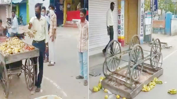 வேலூர் மாவட்டத்தில் இருந்து அண்மையில் புதிதாக பிரிக்கப்பட்ட திருப்பத்தூர் மாவட்ட நிர்வாகத்திற்குள் வருகிறது வாணியம்பாடி. இந்த தொகுதியில் இருந்து எம்.எல்.ஏ.வாக வெற்றிபெற்ற நிலோபர் கபில் அமைச்சராகவும் உள்ளார். இந்த சூழலில் வாணியம்பாடி நகராட்சி ஆணையர் சிசில் தாமஸ் நேற்று ஆய்வு நடத்த சென்ற போது, வியாபாரிகளிடம் இருந்து பழங்களை பறித்து குப்பையில் கொட்டியதோடு ஒரு பழ வண்டியை தலைகவிழ சாய்க்கவும் செய்தார்.
