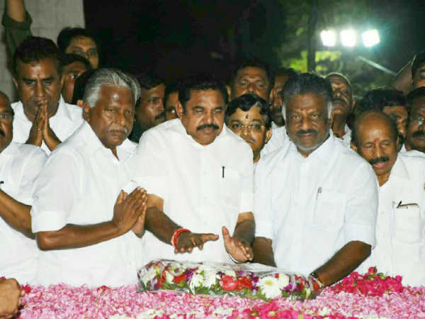 இதனைத் தொடர்ந்து சென்னை மெரினா கடற்கரையில் உள்ள ஜெயலலிதாவின் சமாதிக்கு வந்த முதல்வர் பழனிசாமி மற்றும் துணை முதல்வர் ஓ.பன்னீர்செல்வம் மலர் தூவி மரியாதை செலுத்தினர். இதே போன்று எம்ஜிஆர், அண்ணா நினைவிடத்திலும் இருவரும் மலர் அஞ்சலி செலுத்தினர்.