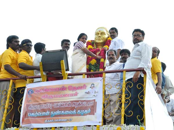 முன்னாள் காங்கிரஸ் தலைவர் குமரி ஆனந்தன், தற்போதைய காங்கிரஸ் தலைவர் ஞானதேசிகன் மற்றும் கராத்தே தியாகராஜன் ஆகியோர் பசும்பொன் முத்துராமலிங்கத் தேவர் சிலைக்கு மலர் தூவி மரியாதை செலுத்தினார்கள்.