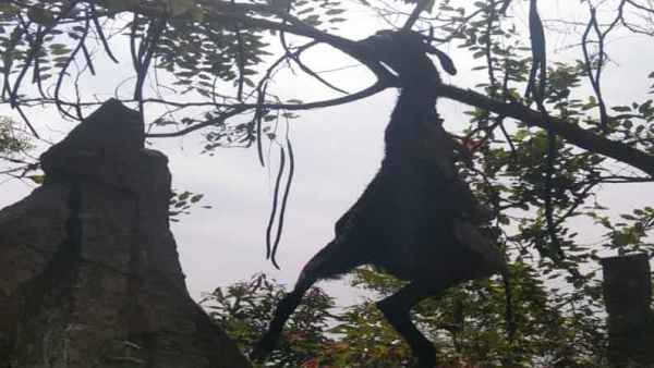 ஆடு ஒன்றை கடித்து மரத்தில் தொங்க விட்டு போயுள்ளது சிறுத்தை