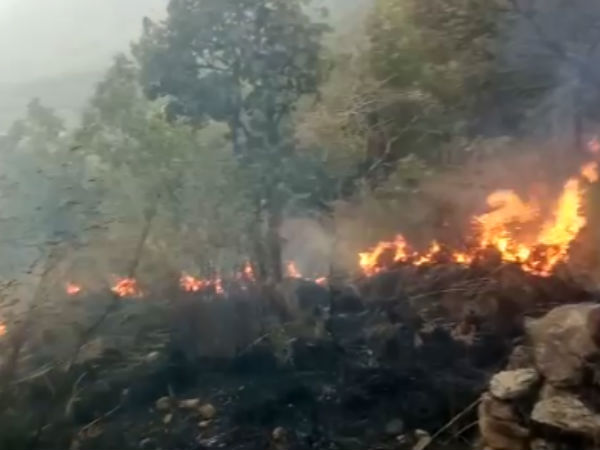 குரங்கனி கொழுக்குமலைப் பகுதியில் பயங்கர காட்டுத் தீ ஏற்பட்டது.