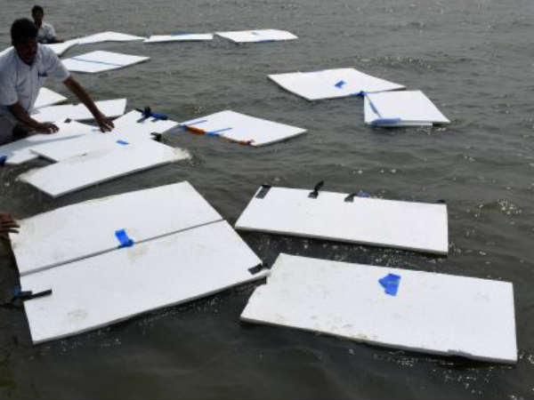 அப்போது 200 மீட்டருக்குள்பட்ட நீர் பகுதியில் நீர் ஆவியாதலை தடுக்க தெர்மாகோல் அட்டைகளை மிதக்கவிட்டனர். இந்நிலையில் அடுத்த 10 வினாடிக்குள் மிதக்கப்பட்ட தெர்மாகோல் அட்டைகள் காற்றின் வேகம் காரணமாக அடித்து வரப்பட்டு கரை ஒதுங்கின.