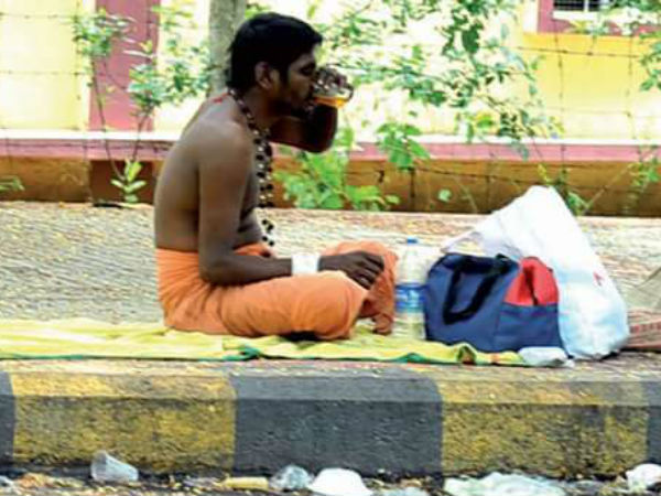இந்த நிலையில் டிவிட்டரில் நமது கண்ணில் பட்டது இந்தப் படம். தஞ்சை சபரி என்பவர் போட்டுள்ள டிவிட்டில் இந்தப் படத்தை போட்டுள்ளார். திருவண்ணாமலை கிரிவலப் பாதையில் ஒரு சாமியார் ஆற அமர பிளாட்பாரத்திலேயே அமர்ந்து மது அருந்துவதாக இந்தப் படம் கூறுகிறது.