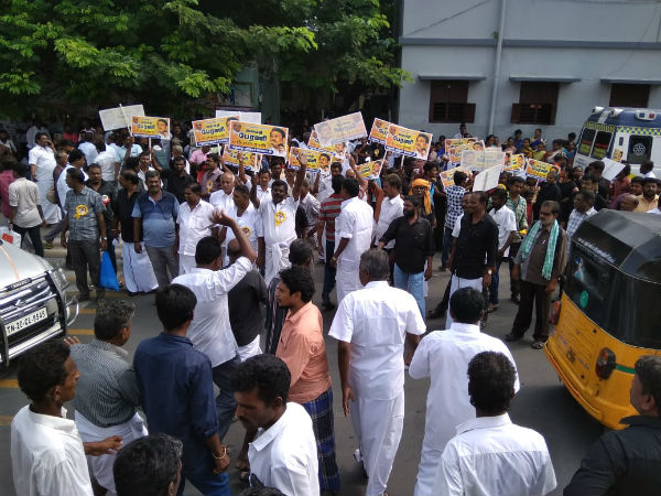 ஆண்கள் மட்டுமின்றி பெண்களும் கருப்பு வண்ண ஆடைகளுடன் அங்கே குவிந்திருந்ததை பார்க்க முடிந்தது. இதற்காக மெரினாவில் பெரிய அளவில் ஏற்பாடுகள் செய்யப்பட்டுள்ளது. பலத்த போலீஸ் பாதுகாப்பும் போடப்பட்டுள்ளது.