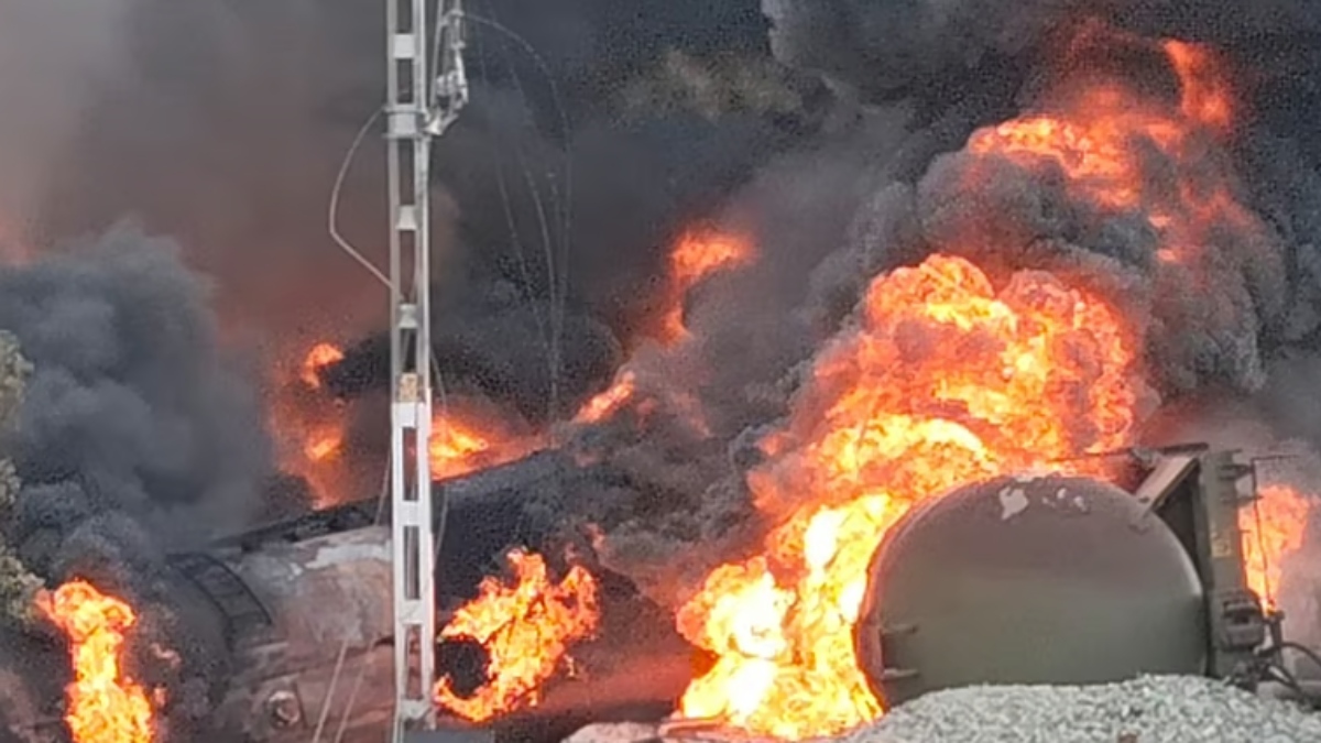 7 மணிநேரம் கொழுந்துவிட்டு எரிந்த டீசர் டேங்கர் ரயில்.. முழுமையாக அணைக்கப்பட்டது. 18 டேங்கர்கள் நாசம்