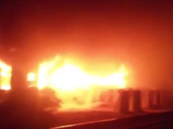 நிறுத்தி வைக்கப்பட்டிருந்த ரயில் பெட்டிகள் குப்பென்று பற்றி எறிந்ததால் பரபரப்பு.. வீடியோ