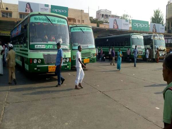 அதனை தொடர்ந்து திருச்சி, தேனி உள்ளிட்ட பகுதிகளில் பிற்பகலுக்கு பிறகே பேருந்துகள் நிறுத்தப்பட்டன. திடீரென பேருந்துகள் நிறுத்தப்பட்டதால் வெளியூர் பயணிகள் கடும் சிரமத்திற்கு ஆளாகினர். தொடந்து அரியலூர் 50 க்கும் மேற்பட்ட பேருந்துக்கள் டெப்போக்குள் நிறுத்தப்பட்டன.
