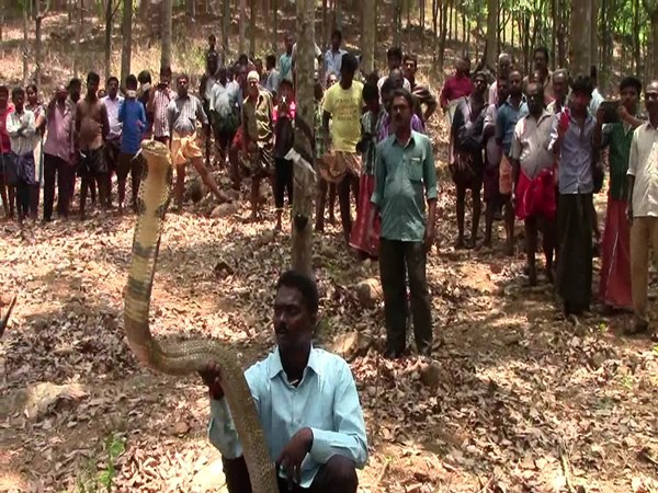 அவர் வந்து, 18 அடி நீளமுள்ள, அதிக விஷம் கொண்ட 2 ராஜநாகங்களை எந்த ஆயுதமுமில்லாமல் இலாவகமாக கையால் பிடித்தார். அவற்றை சாக்குப் பையில் போட்டு வனத் துறையினரிடம் ஒப்படைத்தார்