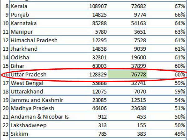 மொத்தம் 1,28,329 மாணவர்கள் தேர்வு எழுதியதில் 76778 மாணவர்கள் தேர்ச்சி பெற்றுவிட்டனராம். தாய்மொழிப் பாடத்தை கூட ஒழுங்காக படிக்க முடியாத கல்விச் சூழல் உள்ள மாநிலமாக இருக்கிறது உத்தரப்பிரதேசம்.