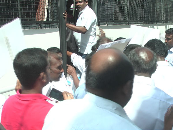 இதில், திமுக சார்பில் வடக்கு மாவட்டச்செயலர் பெரியண்ணன் அரசு தலைமை யிலிலும், காங்கிரஸ் சார்பில் மாவட்டத்தலைவர் தி்.புஷ்பராஜ் தலைமையிலும், மதிமுக சார்பில் மாவட்டச்செயலர் க.சந்திரசேகரன் தலைமையிலும், திமுக முன்னாள் எம்எல்ஏ பே.மாரியய்யா தலைமையிலும் முற்றுகைப் போராட்டத்தில் பங்கேற்ற 4 பெண்கள் உள்பட 150 பேரை போலீஸார் கைது செய்தனர்