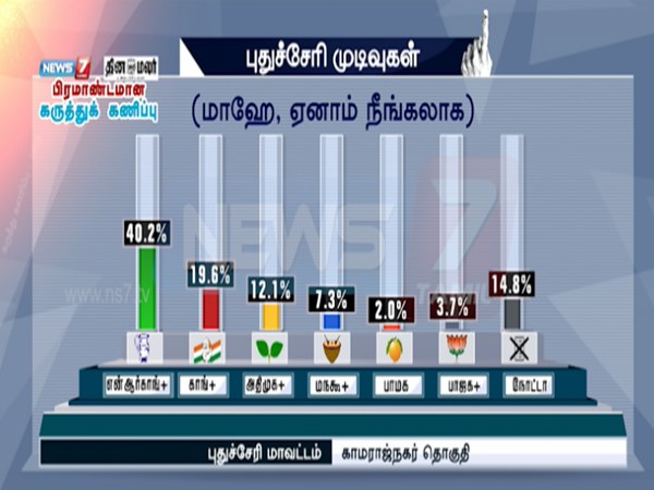 நியூஸ் 7- தினமலர் நடத்திய கருத்துக் கணிப்பில் புதுச்சேரி மாவட்டம் காமராஜ் நகர் தொகுதியில் என்.ஆர்.காங்கிரஸ் கூட்டணிக்கு ஆதரவு இருப்பதாக தெரிவிக்கப்பட்டுள்ளது. இங்குதான் முன்னாள் முதல்வரும் தற்போதைய எதிர்க்கட்சித் தலைவருமான வி.வைத்திலிங்கம் காங்கிரஸ் சார்பில் போட்டியிடுகிறார்.
