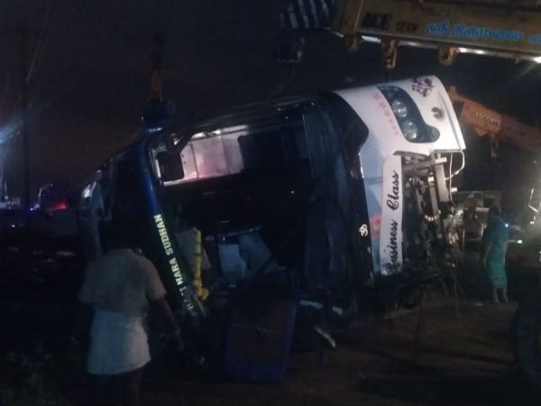 மோதிய வேகத்தில் டிரைவர் தனது கட்டுப்பாட்டை இழந்தார். இதையடுத்து அந்த பஸ் சாலை தடுப்பைத் தாண்டி எதிர்ப்புறமாக சென்றது.