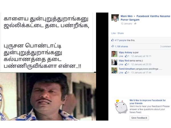 இந்நிலையில் மணி என்பவர் ஃபேஸ்புக்கில் ஒரு நச்சென்ற மீமை வெளியிட்டுள்ளார்.