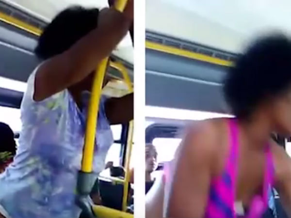ஓடும் பஸ்சில் டிரஸ்ஸை கழற்றி போட்டு ஷோ காட்டிய பெண் - வீடியோ