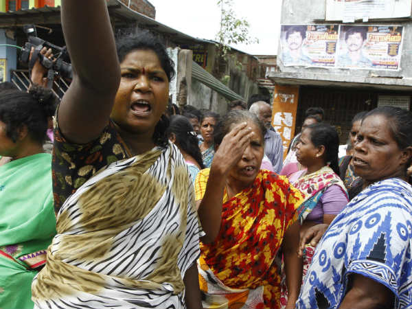 கோபமடைந்த பெண்கள் கொண்டுவந்திருந்த தங்கள் ரேஷன்கார்டுகளை கீழே எறிந்து ஆக்ரோஷம் வெளிப்படுத்தினர். இன்னும் எத்தனை உயிர் போக வேண்டும்.. என்று அவர்கள் போலீசாருடன் வாக்குவாதம் செய்தனர்.