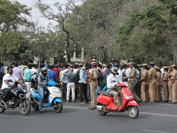 கூவத்தூர் பகுதியிலுள்ள ரிசார்ட்டிலிருந்து எடப்பாடி பழனிச்சாமி ஆதரவு எம்.எல்.ஏக்கள் கார்கள் மூலம், சட்டசபைக்கு அழைத்துவரப்பட்டனர். அவர்களுக்கு எதிராக பேரணி கிளம்பிய பெண்கள் கைது செய்யப்பட்டனர்.