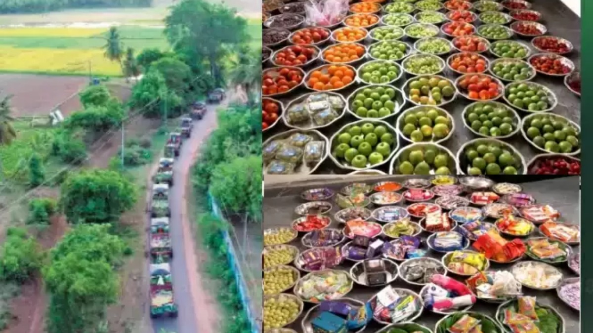 நிச்சயாதார்த்த விழாவிற்கு மாப்பிள்ளை வீட்டார்கள் அருமுளை கிராமத்தில் இருந்து, மொத்தம் 15 டிராக்டர்களில் 500 வகையான சீர்வரிசை தட்டுகளுடன் அமர்க்களமாக கிளம்பி வந்தார்கள்.. அப்போது வாணவேடிக்கை சத்தம், சுற்றுவட்டார பகுதிகளில் எதிரொலித்து கொண்டேயிருந்தது..