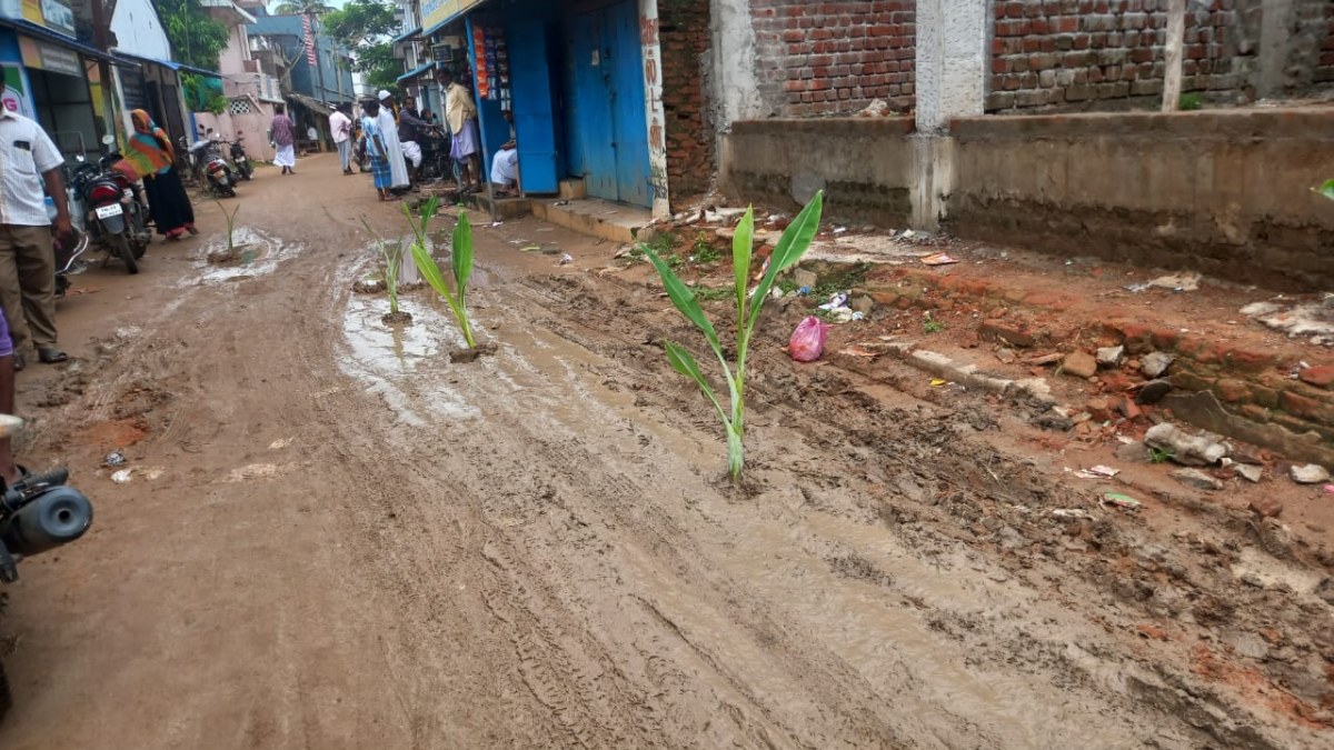 இதனிடையே, குண்டு குழியுமான சாலைகளில் சேறும் சகதியுமாக இருப்பதால் மக்கள் கடும் இன்னல்களுக்கு ஆளாகியுள்ளனர். இதன் காரணமாக சாலையை ஒழுங்குப்படுத்தி தருமாறு மக்கள் கோரிக்கை விடுத்து உள்ளனர். மேலும், மக்கள் தங்கள் எதிர்ப்பை காட்டும் வகையில், சாலையில் வாழைக்கன்றுகளை நட்டு வைத்து இருந்தனர். இது தொடர்பான புகைப்படங்கள் இணையத்தில் வெளியாகியது. இந்த நிலையில், மக்களின் கடும் எதிர்ப்பை எடுத்து அந்த இடத்தில் தண்ணீர் தேங்காத வகையில் ஜல்லிக்கற்களை நகராட்சி நிர்வாகம் கொட்டிச் சென்றுள்ளது.