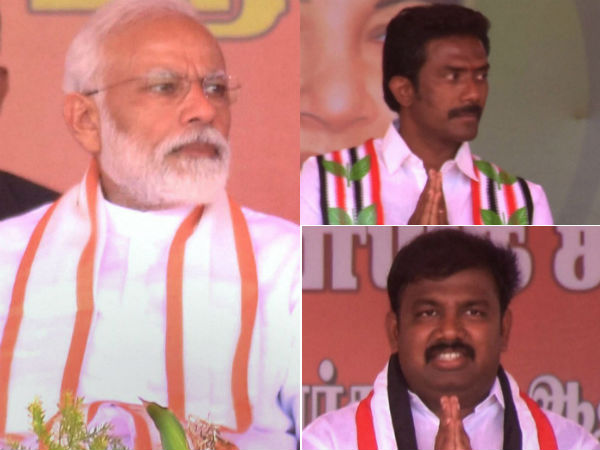 தேனி மக்களவைத் தொகுதி அதிமுக வேட்பாளர் ரவீந்திரநாத் உட்பட ஆண்டிப்பட்டி, பெரியகுளம் இடைத்தேர்தல் அதிமுக வேட்பாளர்கள், மதுரை மக்களவைத் தொகுதி அதிமுக வேட்பாளர் ராஜ் சத்யன், கன்னியாகுமரி பாஜக வேட்பாளர் பொன்.ராதாகிருஷ்ணன் மற்றும் தேமுதிக, பாமக, தமாகா என கூட்டணிக் கட்சி வேட்பாளர்களையும் ஆதரித்து பிரச்சாரம் செய்ய பிரதமர் மோடி இன்று தேனி வந்திருந்தார்.