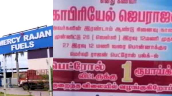 அந்த நிலையத்தின் உரிமையாளர் மெர்சி ராஜன், தனது கணவரின் நினைவு தினத்தையொட்டி, பெட்ரோல் லிட்டருக்கு ஒரு ரூபாய்க்கு குறைந்த விலைக்கு வழங்குகிறோம் என்று பேனர் வைத்திருந்தார். அந்த விளம்பரத்தைப் பார்த்த வாகன ஓட்டிகள் ஒரு லிட்டர் பெட்ரோல் ஒரு ரூபாய்க்கு விற்பனை செய்யப்படுவதாக நினைத்து அங்கு சென்று ஒரு ரூபாய் கொடுத்து பெட்ரோல் போடச் சொல்லியுள்ளனர்.