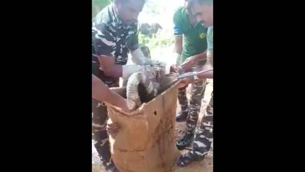 பின்னர் ஒருவர் பாம்பின் வாய்ப்ப குதியை இறுக்கமாகப் பிடித்துக்கொள்ள, மற்ற வேட்டைத்தடுப்புக்காவலர்கள் இணைந்து அதனை ஒரு கோணிப் பைக்குள் மிகவும் லாவகமாகப் போட்டுச் சென்று, சிவசைலம்பீட் கல்லாறு பகுதிக்குச் சென்று விட்டனர். 12அடி ராஜநாகம் பத்திரமாக மீட்கப்பட்டதால் விவசாய பண்ணையில் இருந்தவர்கள் நிம்மதி பெருமூச்சு விட்டனர். இது தொடர்பான வீடியோ இணையத்தில் வைரலாகியுள்ளது.