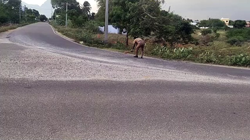 இந்த நிலையில் ரோந்து பணியின்போது இதனை அறிந்த பணகுடி காவல் நிலையத்தைச் சேர்ந்த தலைமை காவலர் ஜெகதீஸ் உடனடியாக அப்பகுதியில் உள்ள ஒரு வீட்டில் துடைப்பத்தை வாங்கிக்கொண்டு தானே கற்களை அப்புறப்படுத்தும் பணியில் ஈடுபட்டார்.