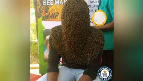4 மணி நேரம்... 60000 தேனீக்கள்.. வித்தியாசமான கின்னஸ் சாதனை படைத்த கேரள இளைஞர்!