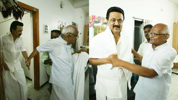 இதை பார்த்து பூரித்துப்போன பத்தமடை பரமசிவம், ஸ்டாலினின் கையை பிடித்து உரிமையோடு வீட்டிற்குள் அழைத்து சென்றார். பழைய நினைவுகளை அசைபோட்ட படி இருவரும் பேசினார்கள். இந்த புகைப்படம் சமூக வலைதளங்களில் வைரலாகி வருகிறது.