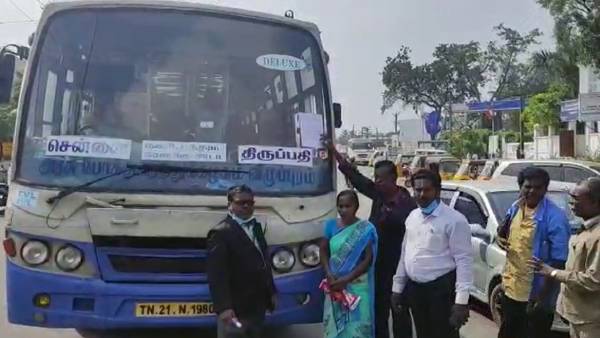 ஜப்தி செய்யப்பட்ட பேருந்து நீதிமன்றம் கொண்டு செல்லப்பட்ட நிலையில் அதில் பயணித்த பயணிகள் மாற்றுப் பேருந்தில் அழைத்துச் செல்லப்பட்டனர்.