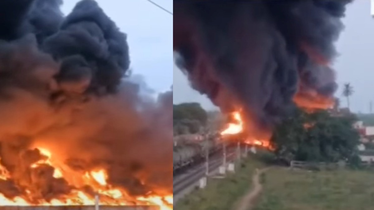 திருவள்ளூர் தீ விபத்து! 5 மணி நேரத்திற்கு மேலாக எரியும் சரக்கு ரயில்- பயணிகள் ரயில் சேவையும் முடக்கம்