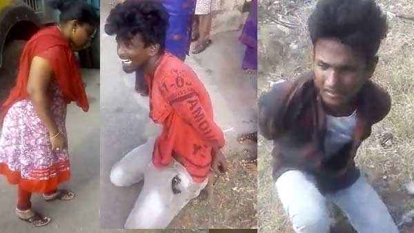 பிறகு அவர்களின் கைகளை பின்புறமாக கயிற்றால் கட்டி தர்ம அடி கொடுத்தனர். "யாருடா நீங்க.. எங்கிருந்து வர்றீங்க.. முட்டி போடு.. முட்டி போடு" என்று அங்கிருந்தோர் சொன்னார்கள். அதற்கு இளைஞர்கள், தண்டையார்பேட்டை என்றனர்.