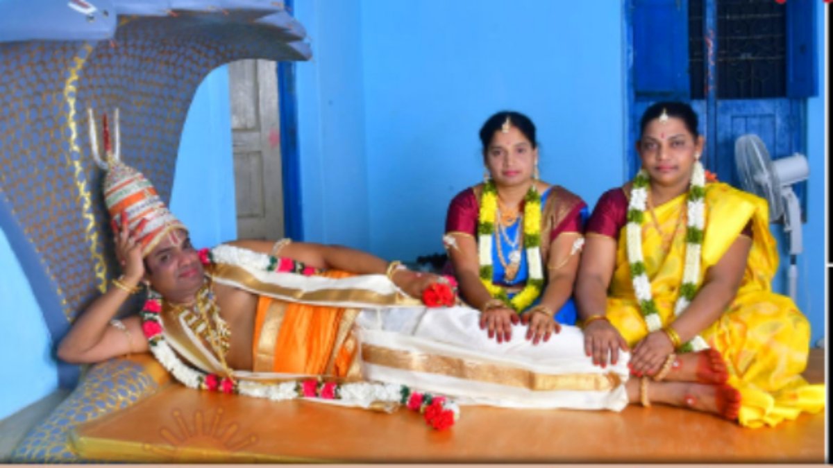 பாம்பு படுக்கையில் படுத்து இரண்டு மனைவியரையும் கால் அமுக்கி விடுவது போல போஸ் கொடுக்க வைத்துபோட்டோ சூட் நடத்தியுள்ளார் அந்த நபர். நடக்க முடியாதவர்களை நடக்க வைப்பதாகவும் பேச முடியாதவர்களை பேச வைப்பதாகவும் கூறி நாடகமாடி பணம் பறித்துள்ளார் சந்தோஷ் குமார்.