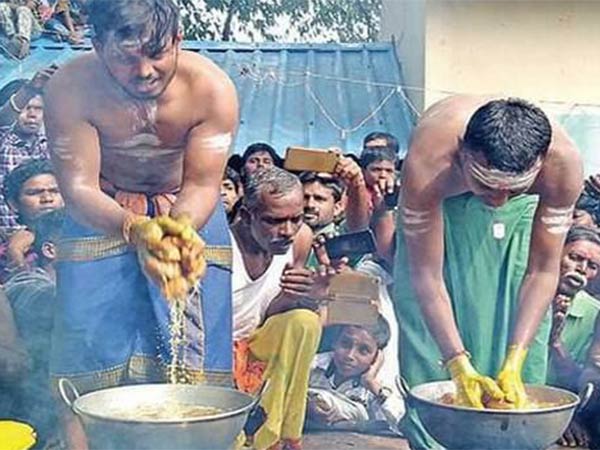 அதில் ஒரு வினோத வழிபாடுதான் பக்தர்கள் கொதிக்கும் எண்ணையில் வடை சுட்டு எடுத்தது. ஒரு பெரிய வாணலில் எண்ணெய்யை காய வைத்து அதில் வடைகளை தட்டி போடுகிறார்கள் பக்தர்கள். பிறகு எண்ணெய் சட்டிக்குள் வெறும் கையை உள்ளே விட்டு வெந்து கொண்டிருக்கும் வடைகளை வெளியே எடுக்கிறார்கள்.