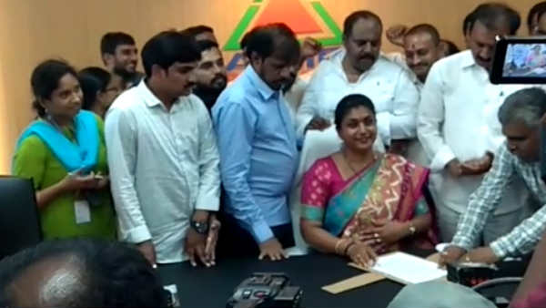 திருப்பதி : நடிகையும் நகரி எம்எல்ஏவுமான ரோஜா ஆந்திர மாநில தொழிற்சாலைகள் துறை முதலீட்டு கழக அலுவலகத்தில் ஆந்திர மாநில தொழில்சாலைகள் துறை முதலீட்டு கழக தலைவராக இன்று (திங்கள்கிழமை) பொறுப்பேற்று கொண்டார்.