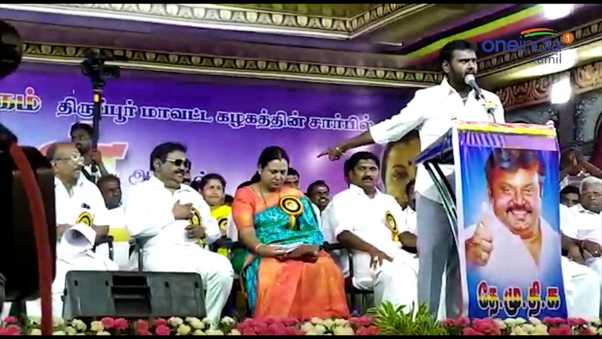 திருப்பூர்: விஜயகாந்தை யாராவது தவறாக பேசினால் செவிலிலேயே அறையுங்கள் என அவரது மகன் விஜயபிரபாகரன் காட்டமாக பேசியுள்ளார்.