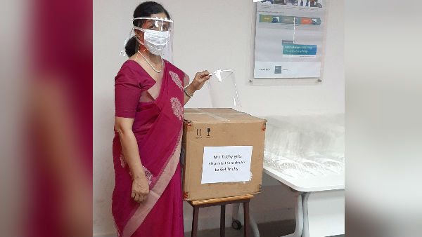 துரைசெல்வம் அவர்கள் 3-டி பிரின்டிங் மூலம் தயாரிக்கப்பட்ட முதல் நூறு முகக் கேடயங்களை திருச்சி மகாத்மா காந்தி நினைவு அரசு மருத்துவமனையின் முதன்மை மருத்துவர் டாக்டர் வனிதா மற்றும் சுகாதார கண்காணிப்பாளர் டாக்டர் ஏகநாதன் ஆகியோரிடம் வழங்கினார்.