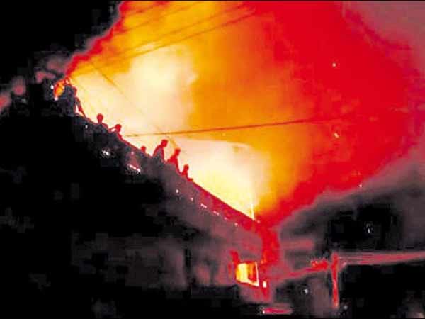இதில் அந்த கொட்டகை தீப்பற்றி எரிய ஆரம்பித்ததுடன் ஜவுளிக்கடைகளுக்கும் தீ தாவியது. ஜவுளிக்கடைகளில் தீ பற்றி எரிவதை கண்டதும் அருகில் இருந்தவர்கள் தண்ணீரை ஊற்றி தீயை அணைக்கும் முயற்சியில் ஈடுபட்டனர். ஆனால், தீயை அணைக்க முடியவில்லை.