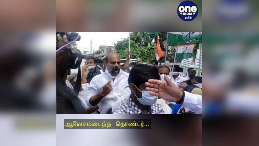 ஏய்... பேட்டி கொடுக்குறேன், அப்றம் கத்துயா! காங்கிரஸ் தொண்டரிடம் டென்சனாகி சீறிய திருநாவுக்கரசர்