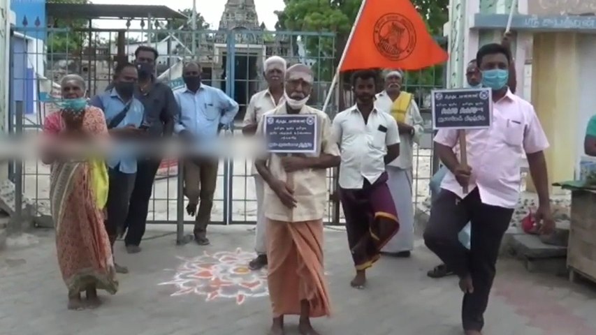 வயலூர் முருகன் உள்ளிட்ட கோயில்கள் முன்பு ஒற்றை காலில் போராட்டம் நடத்திய இந்து முன்னணியினர்