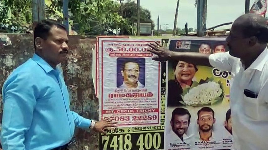 அமைச்சர் கே என் நேரு அவர்களின் சகோதரர் ராமஜெயம் கொலை செய்யப்பட்டு 10 ஆண்டுகள் ஆகியும் கொலை குற்றவாளிகளை அடையாளம் காண முடியாத சூழலில் குற்றவாளிகளை பற்றி தகவல் தருபவர்களுக்கு ரூபாய் 50 லட்சம் சிறப்பு பரிசு அளிக்கப்படும் என்று இன்று சிவகங்கை நகர் முக்கிய பகுதிகள் முழுவதும் சி.பி.சி.ஐ.டி சார்பு ஆய்வாளர் தலைமையில் காவலர்களே இந்த வால் போஸ்டரை ஒட்டி வருகின்றனர்.