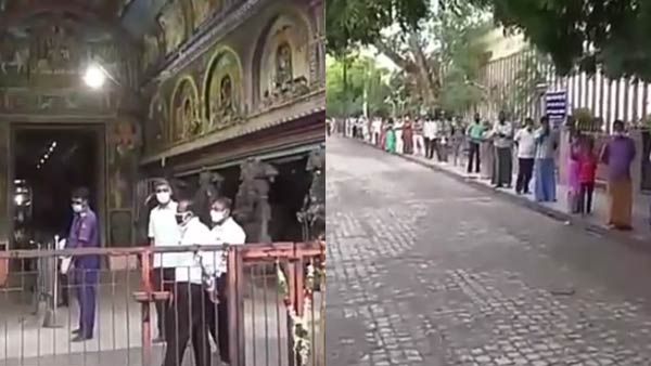 ஐந்து மாதங்களுக்குப் பிறகு கோவில்கள் திறப்பு - வரிசையில் காத்திருந்து வழிபட்ட பக்தர்கள்