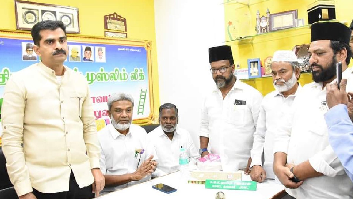 திருச்சி: இந்திய யூனியன் முஸ்லிம் லீக் திருச்சி தெற்கு மாவட்ட நிர்வாகிகளை அலுவலகத்தில் சந்தித்து வாக்கு சேகரித்தார் திருச்சி லோக்சபா தொகுதி வேட்பாளர் துரை வைகோ.